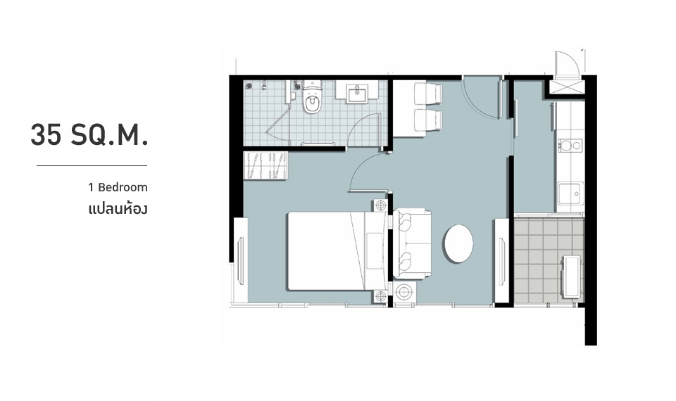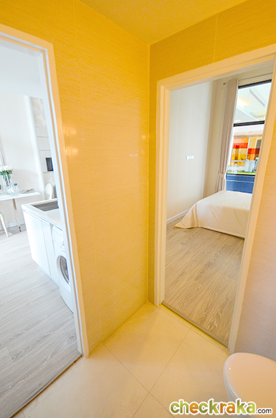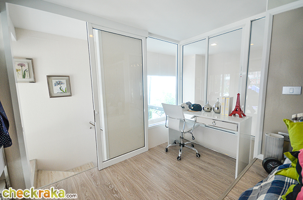 และห้องนี้ก็ไม่ต้องซื้อเตียงนอนนะคะ เพราะโครงการยกพื้นขึ้นมาให้สำหรับวางที่นอนขนาด 3.5 ฟุตแล้ว