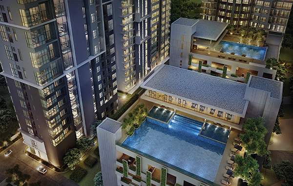 อาคารจอดรถด้านหน้าสูง 9 ชั้น โดยชั้น 1-7 จะเป็นชั้นจอดรถ ชั้น 8 เป็นสระว่ายน้ำ ชั้น 9 เป็นฟิตเนส อาคารจอดรถด้านหลัง สูง 11 ชั้น โดยชั้น 1-9 จะเป็นชั้นจอดรถ ชั้น 10 เป็นสระว่ายน้ำ ชั้น 11 เป็นฟิตเนส ภาพจำลองบรรยากาศส่วนกลางของทางโครงการ โดย จะมีสระว่ายน้ำ ฟิตเนส และสวนให้นิดหน่อยค่ะ ซึ่งจะมี 2 ชุดด้วยกัน ลูกบ้านสามารถใช้ส่วนกลางของอาคารไหนก็ได้ค่ะ สระว่ายน้ำเป็นระบบคลอรีน มีขนาด 16x20 เมตร และ 12x20 เมตร มีจากุชชี่ให้ด้วยค่ะ ภาพจำลองถนนทางเข้าโครงการ