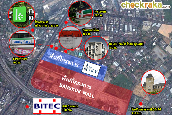 ภาพจำลองที่ตั้งโครงการ The Sky Sukhumvit เมื่อห้างสรรพสินค้า Bangkok Mall สร้างเสร็จแล้วค่ะ จากถนนสุขุมวิทต้องเข้ามาประมาณ 300 เมตร ค่ะ จึงจะถึงตัวโครงการ