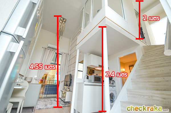 มองลงไปชั้นล่างสูงเหมือนกัน ห้องนอนนี้ความสูงจากพื้นถึงเพดานอยู่ที่ 2 เมตรเท่านั้น ใครที่สูง 170+ ขึ้นไปอาจจะต้องระวังหัวกันหน่อย