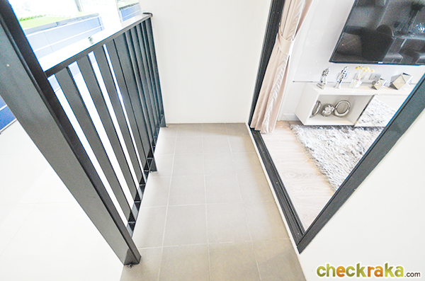 ระเบียงก็จะกว้างประมาณนี้ ไม่ได้กว้างมาก สามารถวางชุดโต๊ะเล็กๆ ชมวิว จิบกาแฟยามเช้าได้