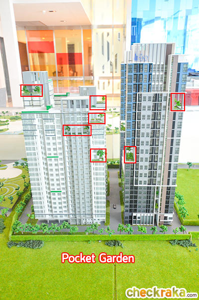 นอกจากนั้นแล้วยังมี Pocket Garden แทรกอยู่ในอาคารแต่ละชั้นด้วยค่ะ ลูกบ้านสามารถเข้าไปนั่งพักผ่อนได้