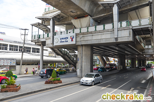 สามารถใช้รถไฟฟ้า BTS "สถานีอุดมสุข" ได้ค่ะ โดยระยะทางห่างจากโครงการประมาณ 550 เมตรเท่านั้น