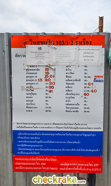 วินมอเตอร์ไซค์หน้าซอยสุขุมวิท 103/2 แจกแจงค่าโดยสารตามระยะทางไว้อย่างละเอียดเลย