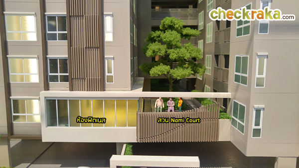 ห้องฟิตเนส จะอยู่ติดกับสวน Nami Court แบบ Semi-Outdoor ซึ่งจะอยู่บนชั้น 2 โซนด้านหน้าโครงการ