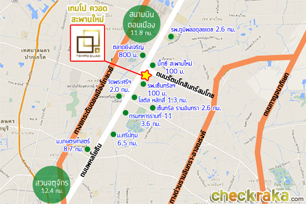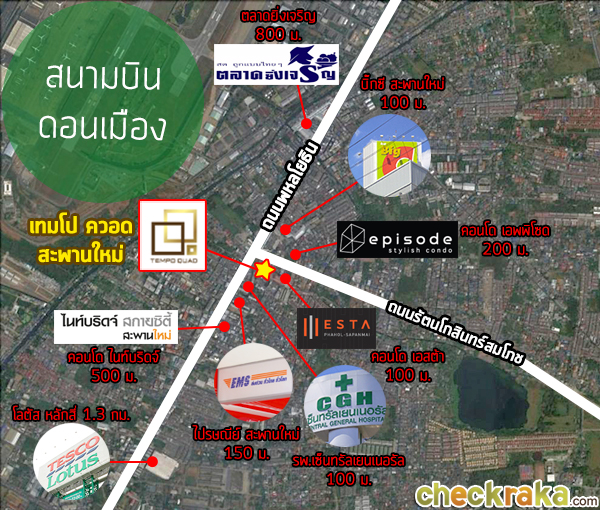 "เทมโป ควอด สะพานใหม่ (Tempo Quad Saphanmai)" เป็นคอนโดมิเนียม Low Rise สูง 8 ชั้นค่ะ ซึ่งตอนนี้ทำเลริมถนนพหลโยธินยาวไปจนถึงโซนสะพานใหม่กำลังฮอตเป็นที่น่าจับตามองทีเดียว เริ่มมี Developer หลายเจ้ามาจับจองพื้นที่พัฒนาอสังหาริมทรัพย์บ้างแล้ว เนื่องจากโครงการรถไฟฟ้าส่วนต่อขยายสายสีเขียว (หมอชิต-สะพานใหม่-คูคต) เริ่มดำเนินการก่อสร้างแล้วค่ะ ย่านนี้ถือเป็นย่านชุมชนเก่าแก่ที่มีการพัฒนาเติบโตมานานแล้ว อีกทั้งยังใกล้สนามบินดอนเมืองและสถานที่ราชการหลายแห่งอีกด้วย