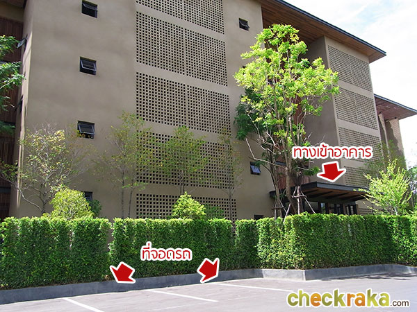 ด้านทางเข้าอาคารเป็นที่จอดรถ