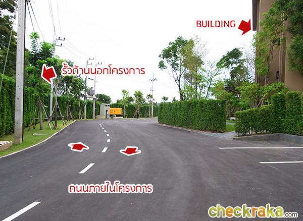 ถนนภายในโครงการก็ใหญ่พอสมควรนะคะ แบ่งเป็น 2 เลน สวนกันได้