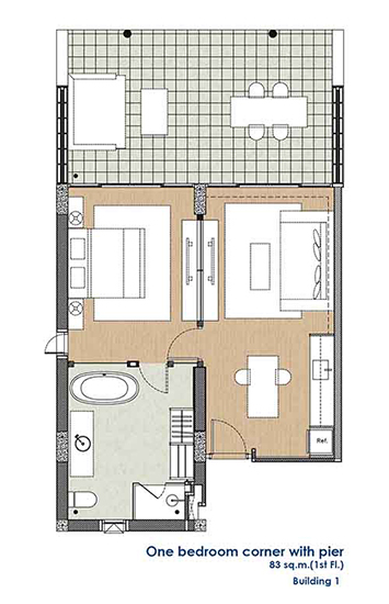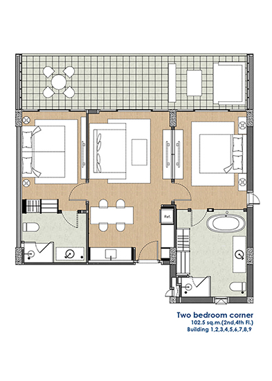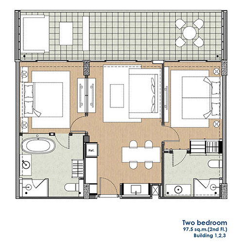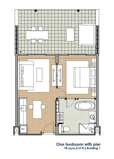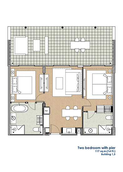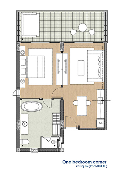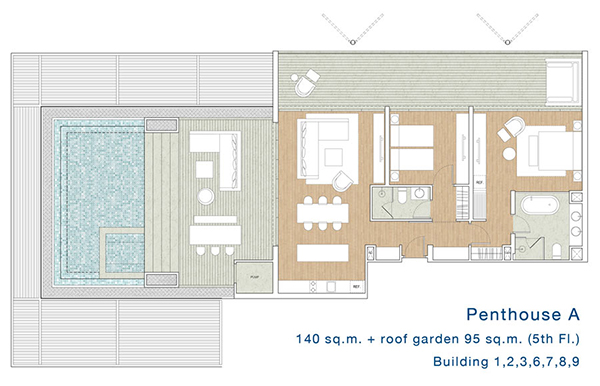 มีไว้นั่งพักผ่อน ชมวิว หรือรับประทานอาหารซึ่งจะ อยู่บริเวณสระว่ายน้ำ อีกมุมหนึ่งของลานอเนกประสงค์ที่จัดวางไว้แบบ Outdoor