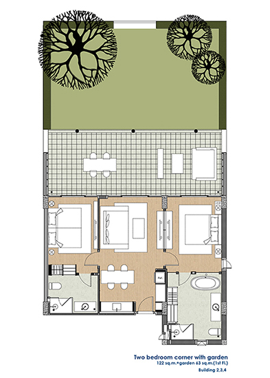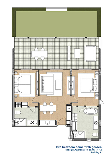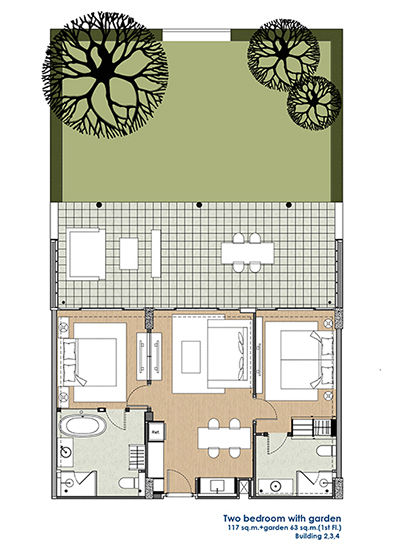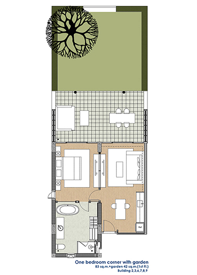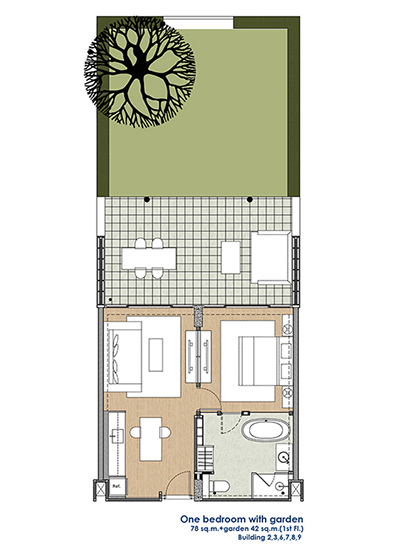 ห้องที่อยู่ชั้น 1 บางห้องจะได้สวนส่วนตัวแบบนี้ด้วย