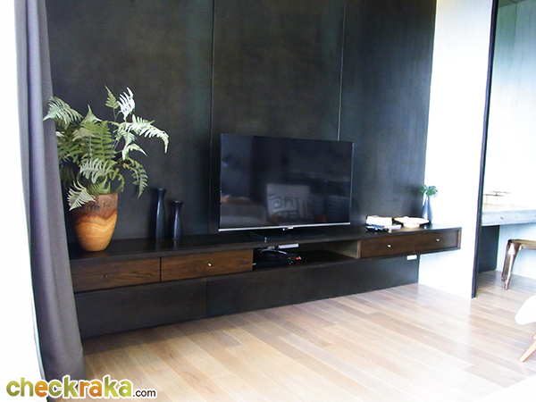 ซ้ายมือ ฝั่งตรงข้ามกับโซฟาเป็นชั้นวางทีวี ที่ทางโครงการบิ้วท์อินมาให้อย่างสวยงาม