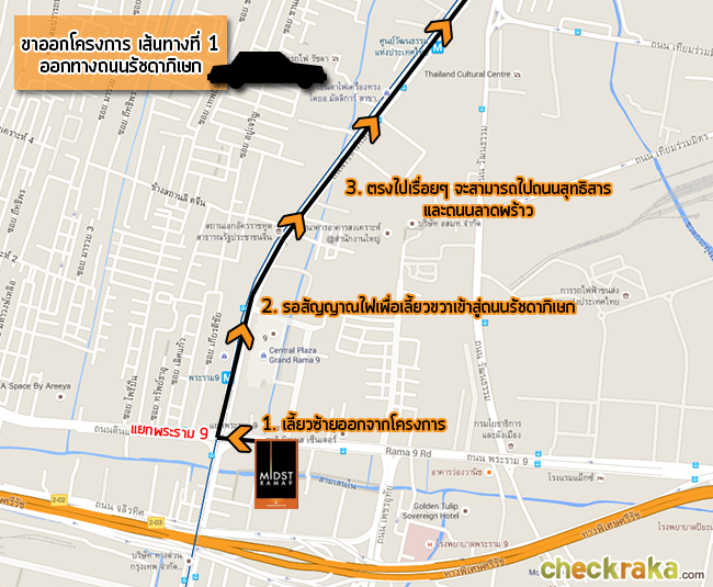 เส้นทางออกโครงการที่ 1 - ออกทางถนนรัชดาภิเษก
