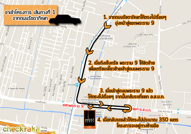 เดี๋ยวเราลองมาดูตัวอย่างการเดินทางด้วยรถยนต์ส่วนตัวจากถนน รัชดาภิเษก