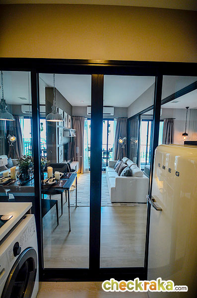 ระหว่างครัวกับห้องนอนด้านในจะมีประตูกระจกบานเลื่อนกั้นไว้ให้เป็นสัดส่วน