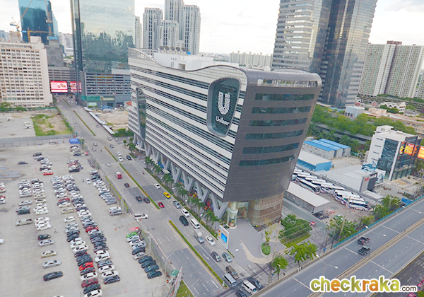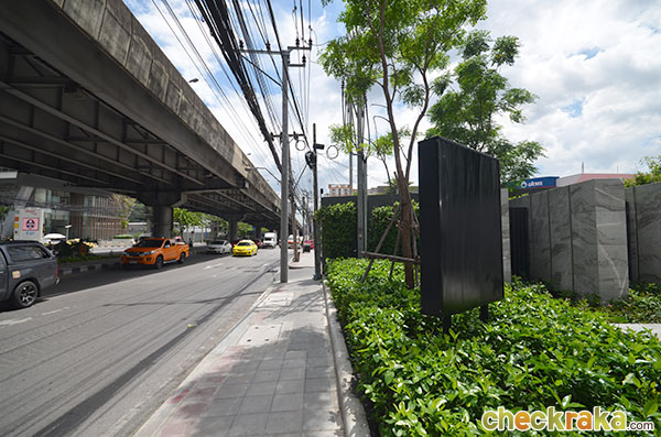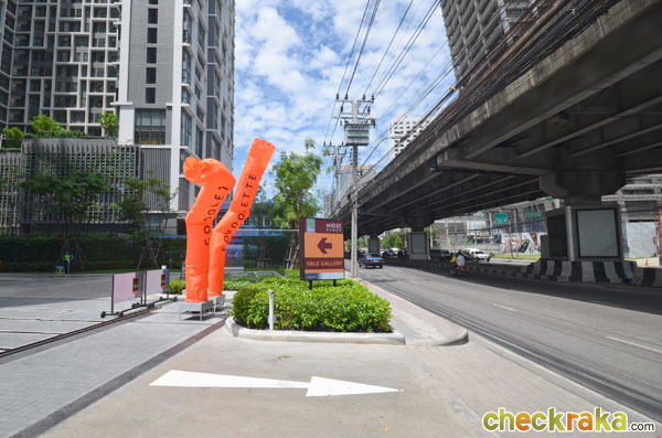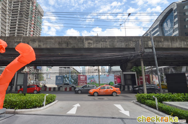 บรรยากาศด้านหน้าโครงการ ฝั่งตรงข้ามก็จะเห็นสะพานข้ามแยกพระราม 9, ตึก U-Place และตึก G Land ที่กำลังสร้างอยู่
