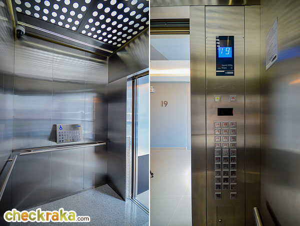 ที่นี่มีลิฟต์โดยสารมาให้ 2 ตัว และลิฟต์บริการ 1 ตัว