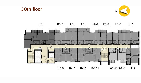 ทิศเหนือจะเป็นโซนด้านหน้าโครงการติดกับถนนใหญ่พระราม 9 เป็นวิวที่ค่อนข้างเปิดโล่ง ทิศตะวันออกโซนด้านหน้าติดกับสถานีบริการ NGV ของ ปตท. ส่วนด้านหลังติดกับคอนโดมิเนียมโครงการ Aspire พระราม 9 ความสูง 25 ชั้น ห้องทางทิศนี้ก็อาจจะโดนบังวิวบ้างในส่วนที่ติดกับคอนโด Aspire ทิศใต้หรือด้านหลังของโครงการจะติดกับคลองสามเสนใน และห่างออกไปไม่ไกลมากก็จะเป็นทางด่วนพิเศษศรีรัช ได้วิวเปิดโล่งเช่นกัน ทิศตะวันตกจะติดกับคอนโดมิเนียมโครงการ IDEO Mobi พระราม 9 ความสูง 28 ชั้น ซึ่งห้องฝั่งนี้ก็จะโดนบังวิวไปแบบเต็มๆ มาดูในส่วนของ Floor Plan ของโครงการกันค่ะ ว่าแต่ละชั้นมีอะไรอยู่ตรงไหนบ้าง