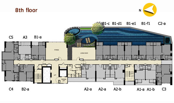 ซึ่งเป็นตัวเลขที่เกินมาตรฐานไปค่อนข้างมากอยู่ ในช่วงเวลาเร่งรีบคงต้องรอกันนานหน่อย ชั้น 2 - ชั้น 7 : จะเป็นส่วนของพื้นที่จอดรถทั้งหมด ชั้น 8 : จะเป็นสิ่งอำนวยความสะดวกหลักๆ ของโครงการอย่างสระว่ายน้ำ, ห้องฟิตเนส และห้องสมุด