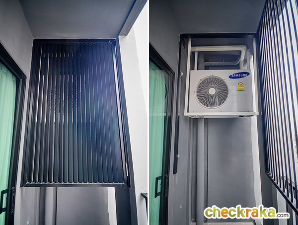 คอมเพรสเซอร์แอร์จะอยู่ด้านนอกระเบียง มีประตูระแนงปิดไว้เพื่อความเป็นระเบียบและเรียบร้อย