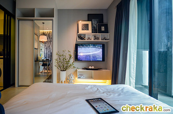 ปลายเตียงเป็นตำแหน่งของตู้เสื้อผ้าแบบ Built-in และชั้นวางทีวี