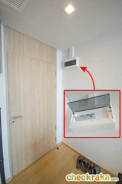 เปิดประตูเข้ามา ด้านหลังประจะมีเบรกเกอร์อยู่ มีช่องเหลือไว้สำหรับติดตั้งไฟฟ้าเพิ่มเติมภายในห้อง
