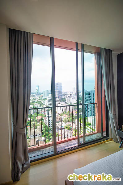 ระเบียงของห้องนอนอาจจะดูเล็กไปหน่อย แต่โครงการตั้งใจออกแบบมาเพื่อให้ลูกบ้านใช้งานภายในห้องอย่างแท้จริง เพราะในชีวิตจริงแล้วเราคงจะใช้เวลาอยู่ที่ระเบียงไม่นานนัก แต่น่าจะใช้งานอยู่ภายในห้องพักอาศัยมากกว่า