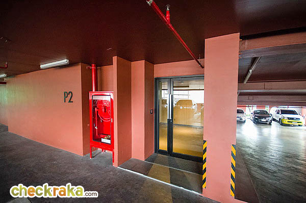 ประตูจากลานจอดรถที่จะเข้าสู่ด้านในตัวอาคาร ก็ต้องใช้สแกนบัตรเช่นกันนะคะ โดยลิฟต์จากลานจอดรถเป็นลิฟต์