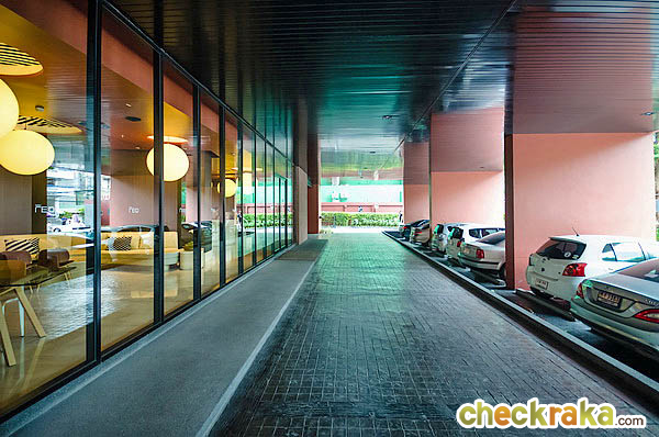 ประตู Lobby เข้าออกด้วยระบบคีย์การ์ด ส่วนด้านหน้า Lobby เป็นพื้นที่จอดรถสำหรับ Visitor
