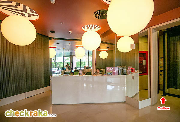 เปิดประตูเข้ามาจะเจอกับ Reception ซึ่งอยู่ตรงกลางระหว่าง Mailbox ที่อยู่ทางขวา และ Lobby ที่อยู่ทางซ้าย