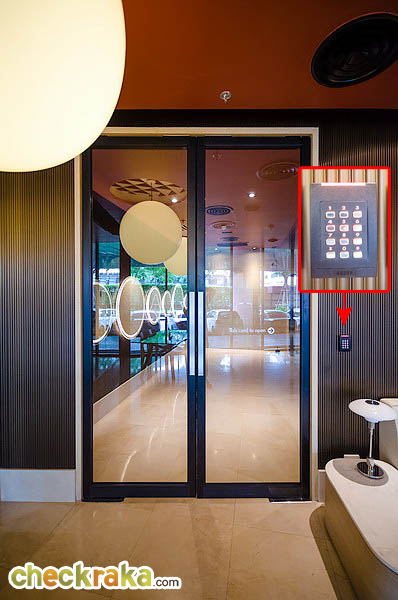 ประตูที่จะเข้าไปยังลิฟต์ สำหรับขึ้นไปที่ห้องพักค่ะ เข้าออกด้วยระบบคีย์การ์ดเช่นกัน