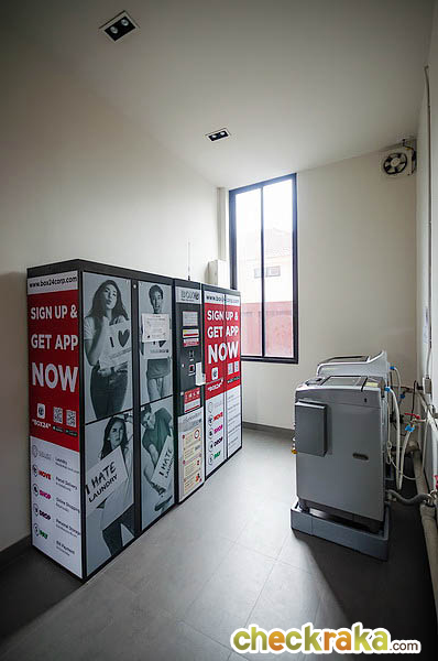 ห้องซักผ้าของโครงการมีตู้ Washbox มาให้ 1 ตู้ และเครื่องซักผ้าแบบหยอดเหรียญมาให้ 2 เครื่อง