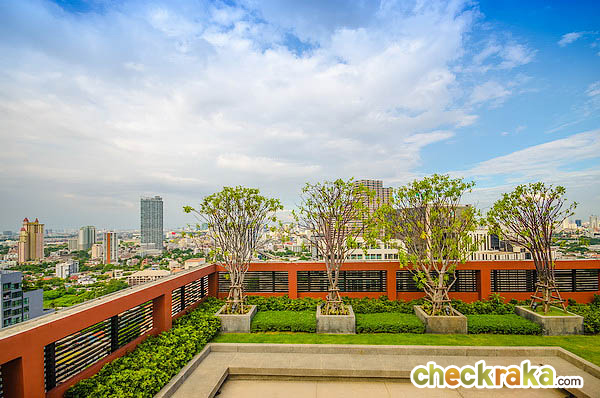 บนชั้นดาดฟ้าทางโครงการจัดเป็นสวนสีเขียว และพื้นที่นั่งเล่นมาให้แบบนี้ค่ะ แต่ตอนกลางวันอาจจะร้อนหน่อยค่ะ