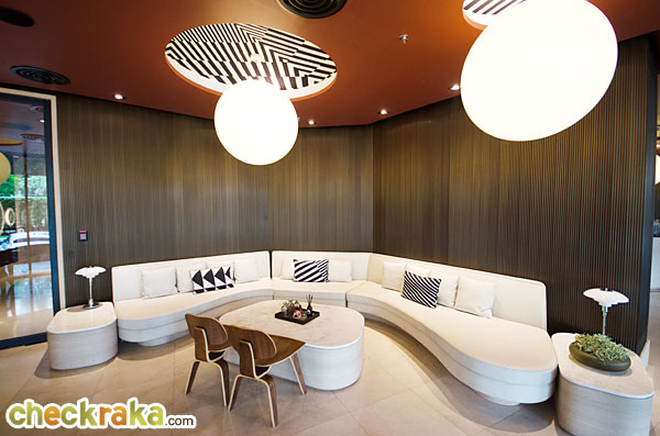 Lobby ออกแบบมาในสไตล์ชิคๆ ตกแต่งด้วยโคมโฟทรงกลมดีไซน์เก๋