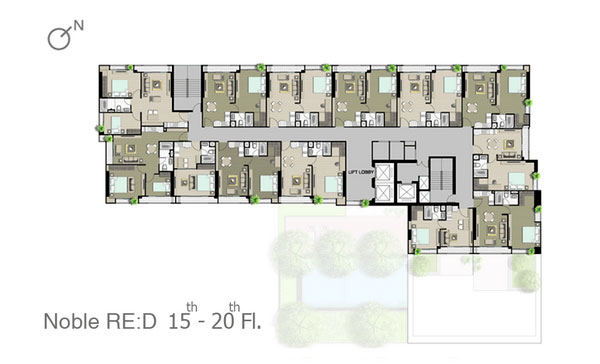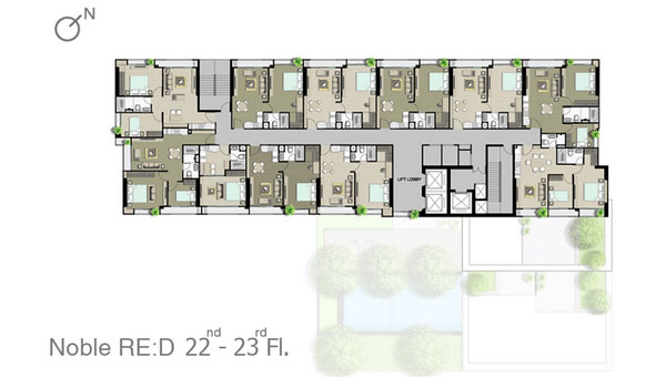 ชั้น 14-20 : จะคล้ายกันคือเป็นส่วนพักอาศัยทั้งหมด แต่จะเริ่มมีห้องแบบ 2 ห้องนอนเพิ่มขึ้นมา และจำนวนห้องพักอาศัยจะลดลงมาอยู่ที่ 13 ยูนิต/ชั้น ชั้น 21-23 : จะคล้ายกันคือเป็นส่วนพักอาศัยทั้งหมด และมีความเป็นส่วนตัวค่อนข้างมากกว่าชั้นอื่นๆ