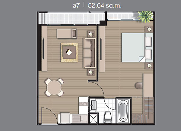 Lay Out ห้องแบบ 1 ห้องนอน ขนาด 52.64 ตร.ม.