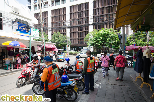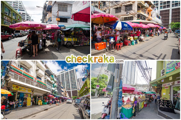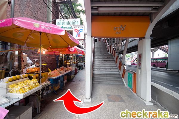 ลงจาก BTS แล้วเลี้ยวขวา จุดสังเกตจะมีแผงลอยขายอาหารเยอะแยะเลย