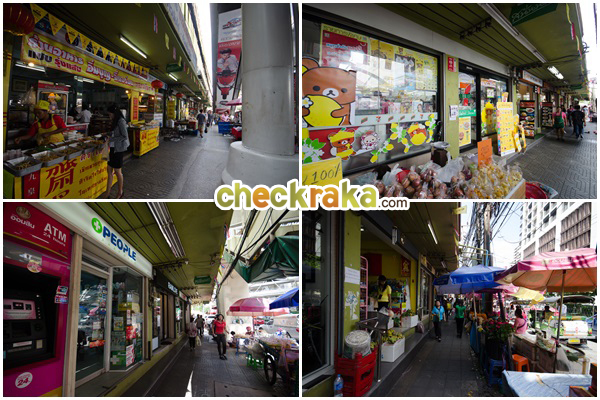 ทั้งร้านค้าในตัวตึกและแผงลอยริมทาง มี 7-Eleven ด้วย