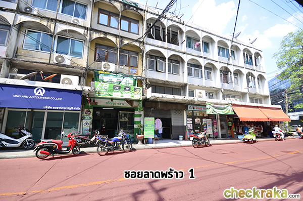 ในซอยลาดพร้าว 1 นอกจากจะมีร้านขายอาหารเยอะมากๆ แล้ว ก็ยังมีครบทั้งร้านขายอุปกรณ์ต่างๆ รวมถึงร้านซักรีด ร้านนวด ร้านขายยา และศูนย์ไปรษณีย์ค่ะ เดินไปเรื่อยๆ เราเห็นตึกสีเหลืองอยู่ข้างหน้านั่นคือยูเนี่ยน มอลล์ค่ะ ในซอยนี้มีเซเว่นถึง 2 แห่ง ตั้งอยู่ใกล้ๆ กัน และมีมินิมาร์ทอีก 1 ร้าน ที่เปิด 24 ชั่วโมง ยิ่งเดินเข้ามาต้นซอย ก็ยิ่งมีร้านอาหารหนาแน่นมากขึ้นค่ะ ร้านอาหารเหนือ-ใต้-อีสาน มีครบค่ะ บริเวณปากซอยข้างๆ ยูเนี่ยน มอลล์ จะมีวินมอเตอร์ไซค์ให้บริการค่ะ ใครที่ไม่อยากเดินก็สามารถใช้บริการได้ ตอนนี้ห้างยูเนี่ยน มอลล์สามารถเข้าได้ทางด้านข้างนี้ค่ะ ส่วนรถไฟฟ้า MRT ต้องเดินไปต่ออีกหน่อย ทางห้างทำทางไป MRT แบบกันแดดกันฝนให้ค่ะ เราเดินไปได้สบายๆ เดินไปเล่นๆ ก็ถึงทางลงไปรถไฟฟ้า MRT แล้วค่ะ เดินมาดูทางขวากันบ้างค่ะ ฝั่งตรงกันข้ามเป็นร้านขายของชำค่ะ เดินเลี้ยวโค้งไปเป็นทางออกไปพหลโยธิน 24 ค่ะ หลังจากโครงการทางขวาเป็นต้นไปจะไม่มีของขายแล้วค่ะ แต่ถ้าหากตรงไปจนสุดซอยเลี้ยวซ้ายจะเจอ Tesco Lotus ลาดพร้าว และยังสามารถทะลุออกลาดพร้าว ซอย 15 ได้อีกด้วย