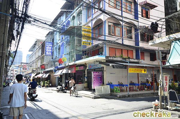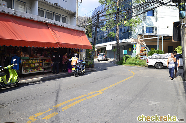 เดี๋ยวเราเดินไปทางซ้ายเพื่อออกไปปากซอยกันก่อนค่ะ ในซอยเป็นซอยเล็กๆ รถสวนกันได้แต่ต้องระวังหน่อย