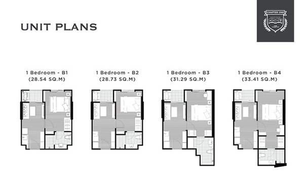 2. ห้องแบบ 1 ห้องนอน ขนาด 28.54 - 33.41 ตร.ม. (