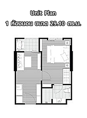 Layout ห้องแบบ 1 ห้องนอน ขนาดพื้นที่ใช้สอย 29.10 ตร.ม.
