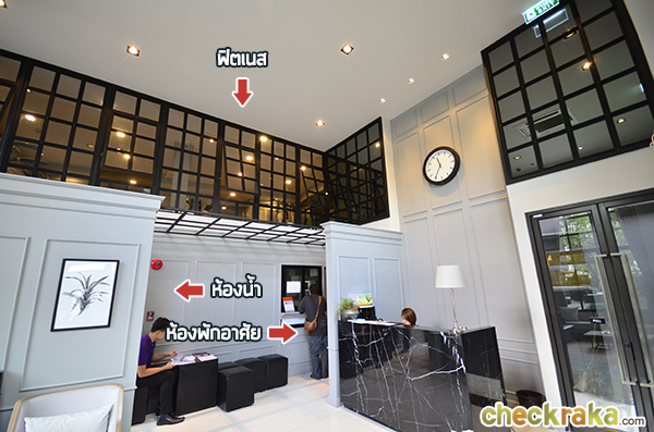 Lobby ของโครงการจะเป็นแบบ double volume เราจะเห็น Fitness จากตรง Lobby นี้ด้วยค่ะ