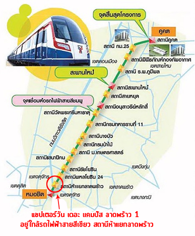 นอกจากนั้นโครงการยังอยู่ใกล้กับรถไฟฟ้าส่วนต่อขยายสายสีเขียว (หมอชิต-สะพานใหม่-คูคต) ซึ่งตอนนี้กำลังอยู่ในช่วงเริ่มก่อสร้าง โดยคาดว่ารถไฟฟ้าจะสามารถเปิดให้บริการภายในปี 2563 สำหรับสถานีรถไฟฟ้าที่อยู่ใกล้โครงการมากที่สุด คือ "สถานีห้าแยกลาดพร้าว" ค่ะ