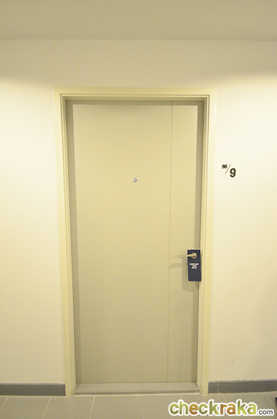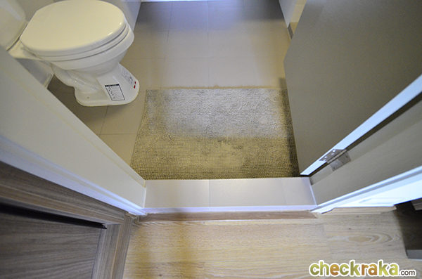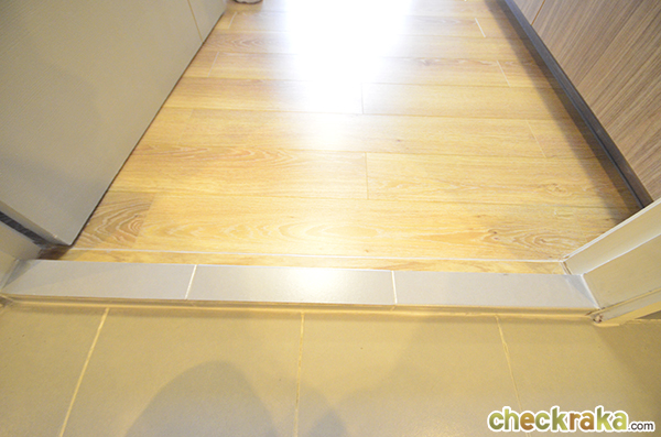 ก่อนเข้าไปในห้องจะมีธรณีประตูสูงประมาณ 2 ซม. ค่ะ