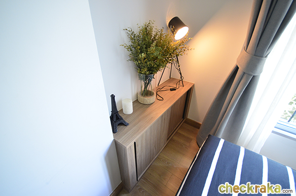 เฟอร์นิเจอร์ที่ทางโครงการให้มาถือว่าครบเลยค่ะ แทบไม่ต้องซื้ออะไรเพิ่ม ในห้องนี้นอกจากเตียง ตู้ข้างเตียง