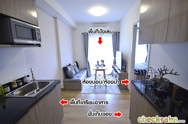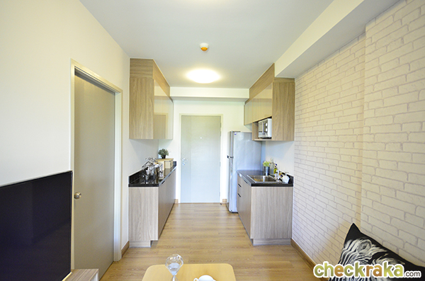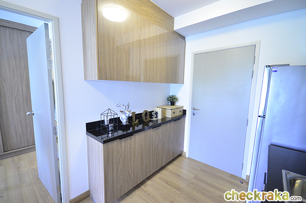 ฝั่งตรงข้ามเป็นพื้นที่เตรียมอาหาร ทางโครงการให้ชุดซิงก์ล้างจานพร้อมตู้เก็บของ