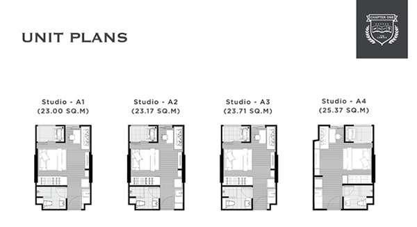 1. ห้องแบบสตูดิโอ ขนาด 23.00 - 25.37 ตร.ม. (