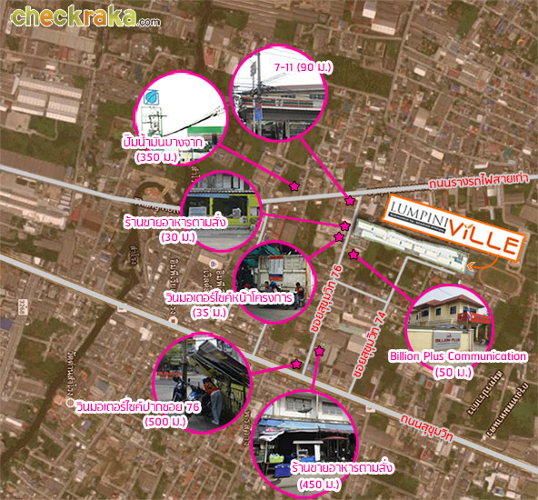 โครงการ "ลุมพินี วิลล์ สุขุมวิท 76 - แบริ่ง สเตชั่น" เป็นคอนโดมิเนียม Low-Rise ความสูง 8 ชั้น จำนวน 4 อาคาร (อาคาร A, B, C และ D) ลักษณะที่ดินเป็นรูปสี่เหลี่ยมผืนผ้า ยังคงคอนเซปต์เป็นอาคารประหยัดพลังงาน "Green Concept" ซึ่งจะถูกนำมาใช้ในทุกๆ โครงการของ LPN โดยอาคาร B กับ C ผังอาคารจะเป็นรูปตัว I ส่วนอาคาร A กับ D ผังโครงการเป็นรูปตัว L โดยเฉลี่ยแล้วแต่ละอาคารจะมีจำนวนห้องพักอาศัยอยู่ที่ประมาณ 200 นิดๆ ด้านหน้าโครงการติดซอยสุขุมวิท 76 สิ่งอำนวยความสะดวกจะกระจายอยู่บริเวณชั้น 1 ของแต่ละอาคาร ยกเว้นอาคาร D ที่จะมีสระว่ายน้ำ และห้องฟิตเนสอยู่ที่ชั้น 2 แต่ละอาคารมีลิฟต์โดยสารมาให้ 2 ตัว อัตราส่วนเฉลี่ยในการใช้ลิฟต์อยู่ที่ประมาณ 111 ยูนิตต่อลิฟต์ 1 ตัว ซึ่งอยู่ในเกณฑ์มาตรฐาน โดยตำแหน่งที่ตั้งของตัวโครงการแต่ละทิศจะติดกับ