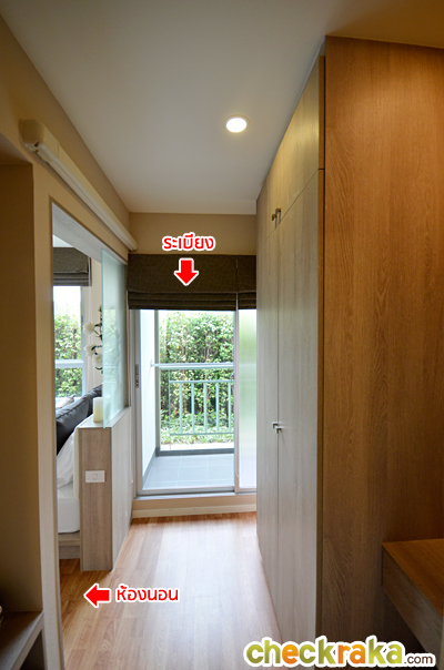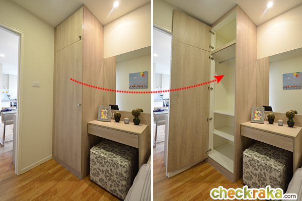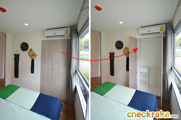 เข้ามาในห้องนอนเล็กติดกับประตูจะเป็นตู้เสื้อผ้า Built-in ทรงสูงจรดเพดาน
