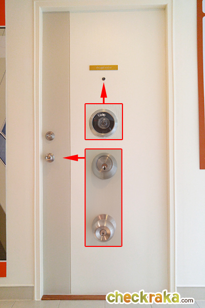 ประตูห้องที่ได้เป็นแบบกลอนลูกบิดธรรมดา มีช่องมองตาแมวให้